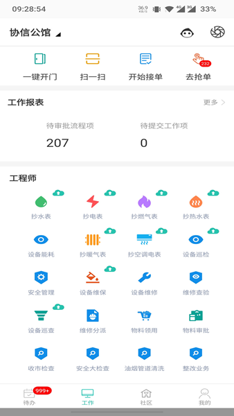 4、5分钟上手,轻松完成物业日常事物上报、故障报修、一键呼叫、远程开锁、出入记录统计等多项物业运营任务,极大简化了物业流程,提升物业工作的透明度,助力业主更轻松地获取到专业级的物业知识。