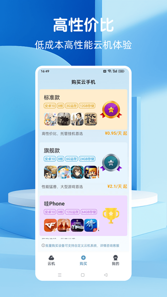 Ma云手机是专为广大游戏爱好者所推出的一款虚拟云手机工具,它能让玩家在离线的情况下畅享云端运行游戏、聊天等功能。该软件采用了全新的界面设计以及傻瓜式的操作步骤方式进行开发,能够给用户带来更为舒适的云手机体验服务!同时Wa云手机app还可谓是一键式多开模式和多开助手玩法让你轻松享受各种乐趣与快乐!除此之外,它的操作方法也十分简单易上手使用,即便你是新手也能够轻轻松松掌握使用方法哦~