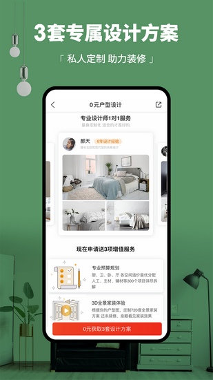 4、专业设计团队:为广大设计师提供专业而优质的服务,无论是新手还是资深装修达人都能够在这里找到合适的装修方案进行购买。