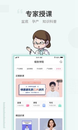 该应用支持在任何时间、地点进行盆顶肌训练服务,让用户轻松完成盆部恢复工作;:不仅适用于各种年龄段的孕妇使用,还提供了丰富的健康知识供用户查看学习了解;:该应用具有专业的医生团队及专家咨询渠道,保证了用户的医疗安全和服务质量;:支持在不同平台上运行使用。无论是安卓还是iOS设备都适合使用该应用程序。
