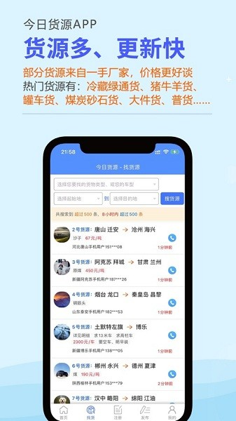 货源是全国知名物流公司专为货车司机设计打造的一款高效找车、配货工具软件,可帮助广大货主快速找到适合自己的货源和车辆资源;提供精准定位功能以及实时导航系统让您省时又省力地完成寻找工作!