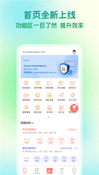 幼儿园家长可以随时随地的了解孩子在学校的情况,包括出勤率,课堂表现数据,让家长及时掌握孩子的在园动态,从而提高幼儿园的管理效率。