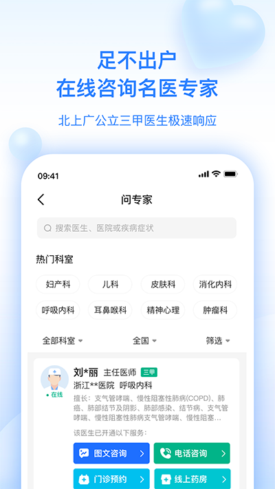 2、1对1私密通道:全职医师,一对一家医,更安全。