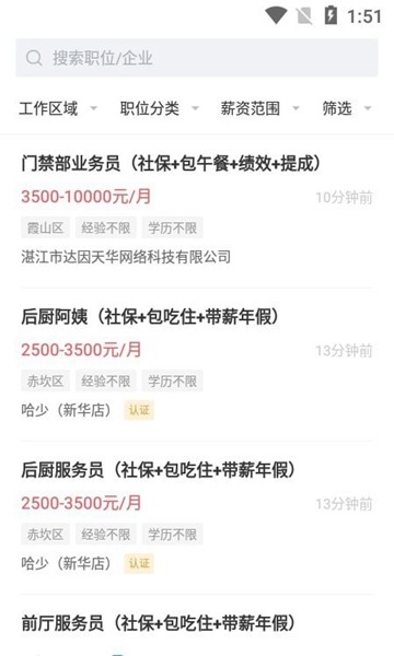 7.【附近工作】:搜索结果页可看到自己家附近的工作的详细情况。