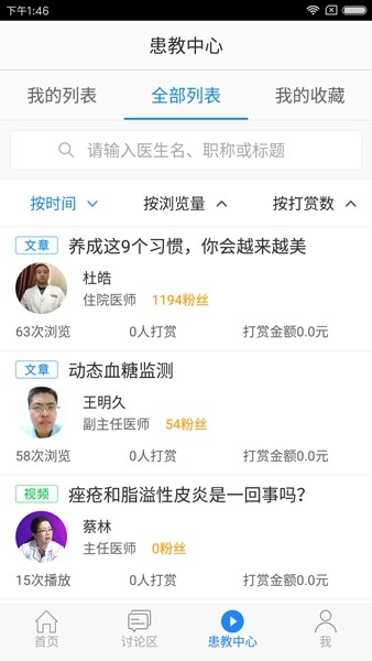 6.“医教中心”,包含医生工作室、医生培训基地、医生团队等多个板块供医生选择参与学习。