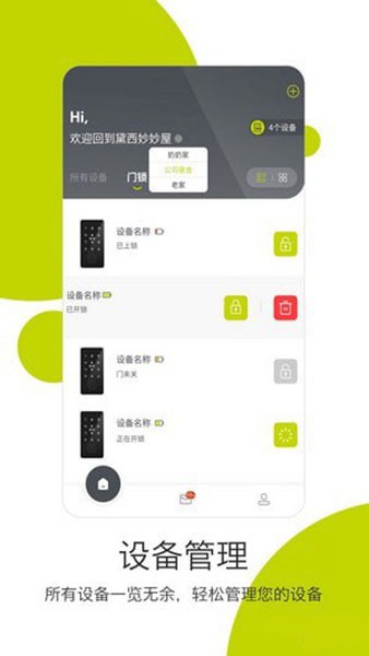 让您用手机就能轻松地将门锁开关开机,一键即可开启门禁使用状态,并且可设置密码保护模式以及报警机制保障您的安全,随时随地的掌上智慧生活。