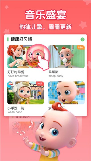 海量音乐随心听;:唐诗宋词成语儿歌;:亲子互动寓教于乐,寓言儿歌,趣味早教;。收录1500+首精选双语儿歌,让宝宝快乐学习,轻松学中文、数字、汉字、英语儿歌;:儿童情景模拟故事,带给宝宝更多情景带来的惊喜。