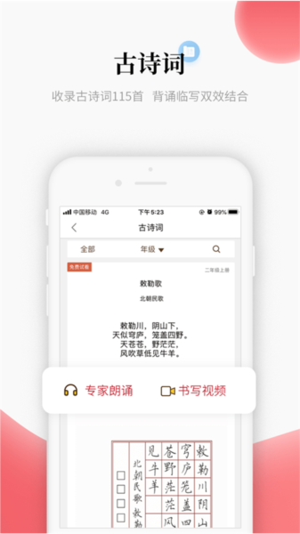以图文/音频等多媒体形态展现各科目教学成果,丰富多样的教学资料库有助于满足不同用户的需求,如书法、国学等各类学科应有尽有。
