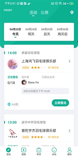 5.“赛事”模块可以观看各种羽毛击杀、进攻赛等精彩赛事的视频节目,并对赛事进行详细记录回放。