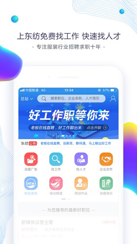 东纺招聘可直接投递简历,让求职者能够更加方便快捷的找到合适的工作。平台每天都会为企业推荐最新的职位信息给到大家选择!