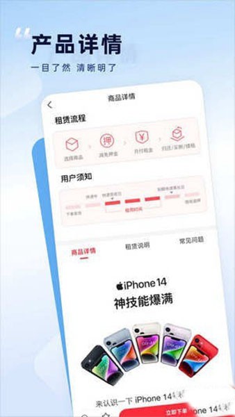 如意租电子设备租赁软件是款相当方便的手机租赁平台,开启之后用户们可以快速进行各种智能设备的选择和选择。在线点击即可获取到我们的详细介绍信息我们还能根据自己的喜好去挑选适合自己口味的产品