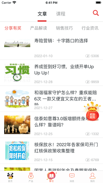 熊猫保保app内置强大的营销素材库,包括海量精美文案、模板可用于宣传自己的产品或获客渠道,吸引潜在客户。