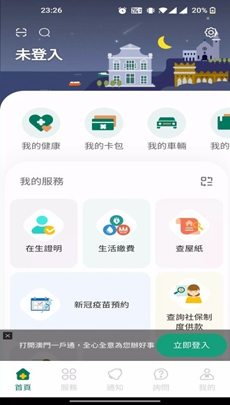 澳门的一户通app是专为澳门市民打造的一个线上办公平台,使用起来很方便快捷哦;该平台可以满足大家在手机上来查询相关信息的功能需要,还可以直接在线上进行相关的办理和操作了,