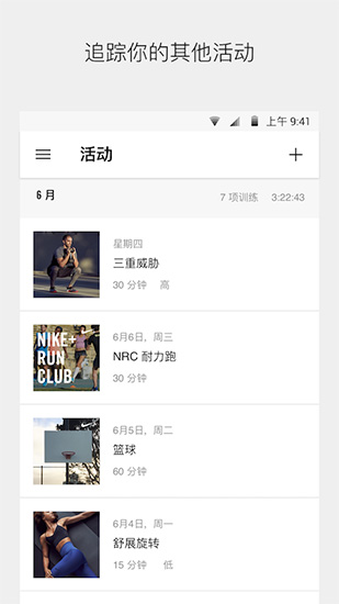 在你的移动设备上使用“Nikefit”或类似于AppleWatch上的个人计划功能来定制您的锻炼。无论你身处何方都能轻松追踪并获得您最常使用的健身项目。