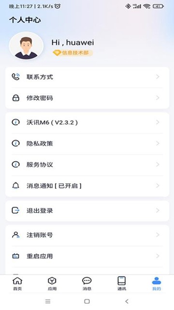 沃讯M6一款专业的移动办公服务应用软件,沃讯M7能够帮助用户进行线上的沟通交流和使用手机端处理事务。在沃讯m5是专为广大用户打造的一个智能企业通讯管理平台哦!可以让企业员工之间通过网络电话、短信等方式来实时联系到员工,非常方便实用哦,感兴趣的朋友们欢迎前来下载体验吧~