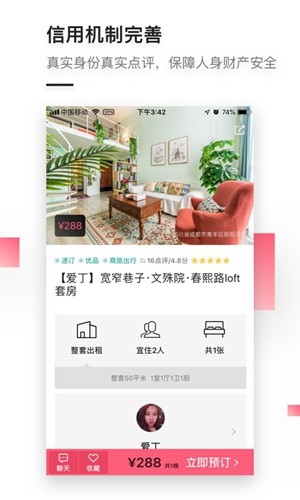选择需要的房屋后即可马上与房主进行聊天互动交流啦;