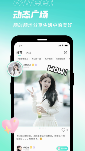 2.【动态广场】:展示自己的魅力或分享生活趣事,吸引更多有趣的人加入。