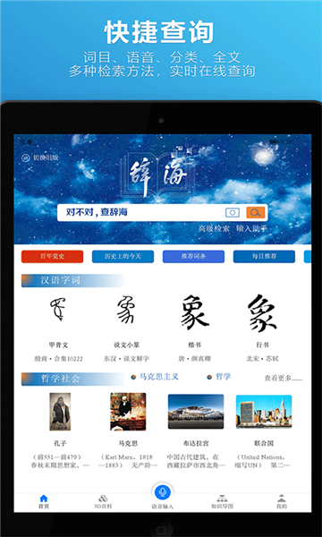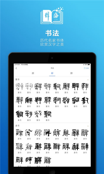 辞海HD是上海词汇出版社精心设计的一款辞书阅读软件,软件收录了超过30000余本外研社出版的近万条汉语词典,并收纳国内外2000多个经典成句,让用户在学习时更加轻松、高效。除此之外,该辞书阅读软件还提供生字查询功能,可以帮助您快速查阅自己想要的信息内容。除此之外,软件界面简洁,操作便捷,使用起来非常方便。有需要的用户不妨下载体验一下试试看吧!