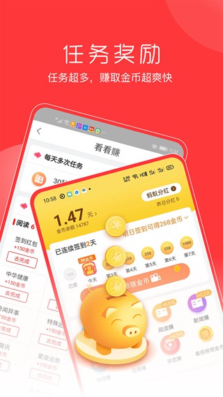 5.“红包任务”功能让您一边看视频边赚取红包奖励;