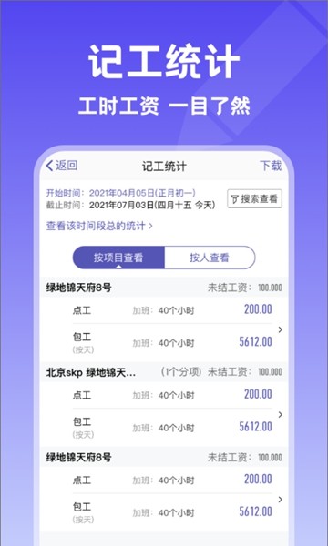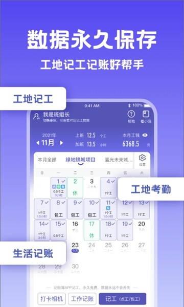 记账簿是专为建筑工人打造的一款便捷记录考勤软件,能够帮助用户快速进行工地管理操作。智能统计数据信息方便快捷查询了解工资情况详情内容等!