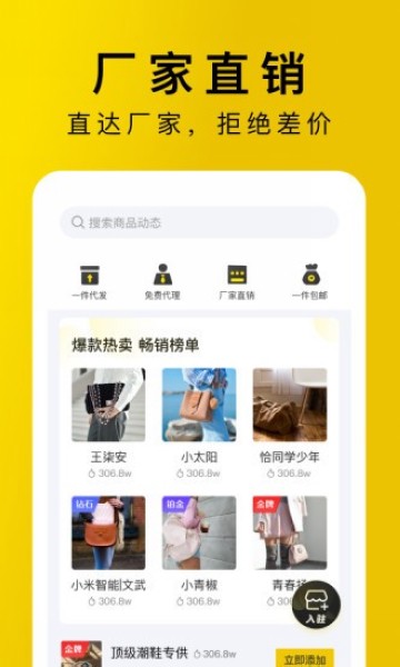 包包源头是全球最大的潮牌商城,目前已与上万款国内外热门品牌合作,涵盖男装/女装/童鞋/内衣等多项潮流类目。平台每日发布近千件精选款式,覆盖各类潮物,包括手表,数码产品,户外用品。同时,平台设有“卖家”专属功能,帮助商家快速完成线上销售任务。