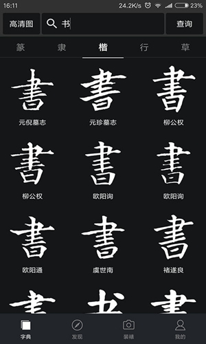 3.“字典”板块包含常用字,如:毛遂良书法、兰亭序等。