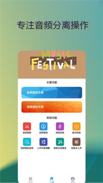 音乐伴奏提取是长沙米库网络工作室app是一款专为广大喜欢听歌的用户朋友们打造的手机端音乐播放软件,这款软件有着最为精致的界面和多元化的音质选择功能,用户可以轻松地对自己喜欢的歌曲进行下载收听体验,给您带来最佳的听觉享受!